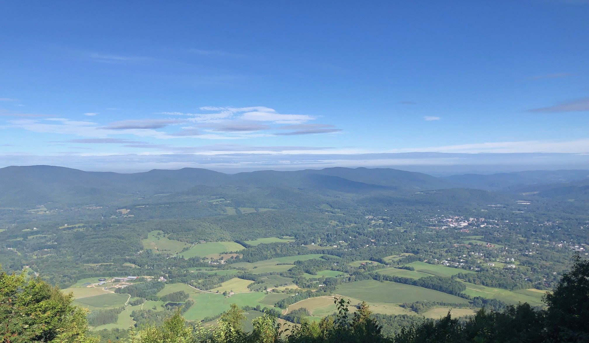 Along the way, I met Funside, a super cool hiker who, along with her dog, has thru-hiked the AT, the Pacific Crest Trail, and the Continental Divide Trail, thus completing the “triple crown” of thru-hiking in the United States. Here, she was merely in the middle of a thru-hike of the Long Trail, which is a ~280-mile trail that runs the length of Vermont from north to south. By 11:00, I reached the summit of Killington and I paused to enjoy the amazing views in the clear weather. Just like Mt. Washington, there is a gondola to the top, so I met a lot of people in T-shirts and flip-flops who looked incredulous at the fact that someone actually walked to the summit.